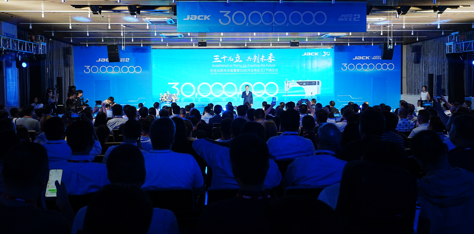 7月18日,时逢杰克科技30周年生日,杰克3000万台智能缝纫机下线仪式在椒江总部隆重举行。