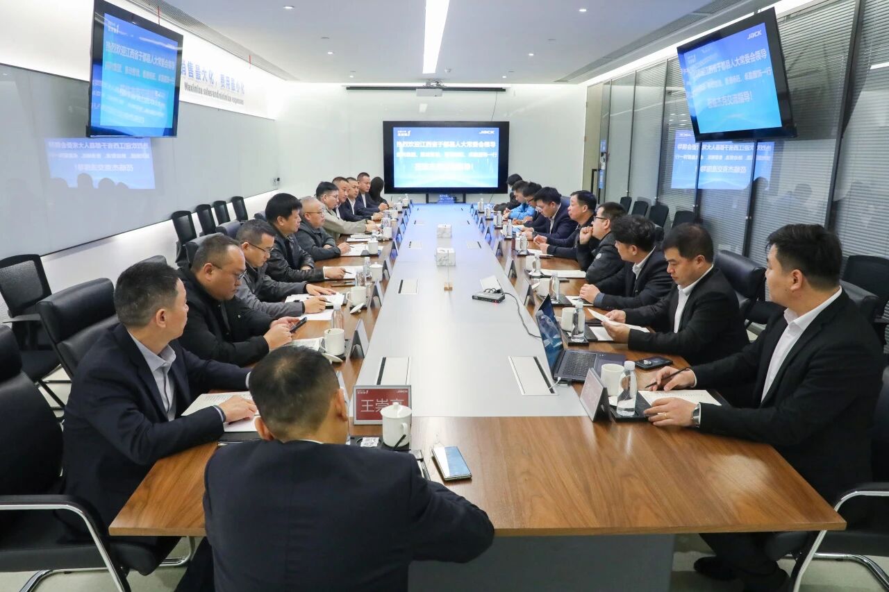 会前,于都一行还参观了杰克智慧工厂,以及产品展厅、党建展厅等,近距离感受杰克在智能制造、产品创新等方面的实践成果。