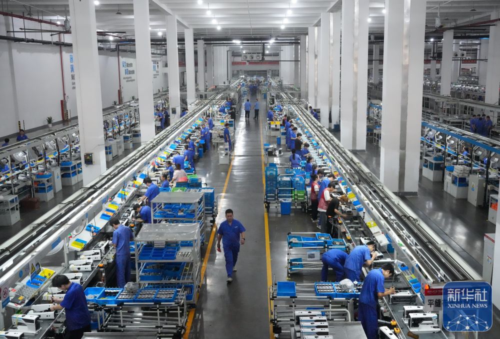 7月17日,在杰克科技股份有限公司台州湾工厂,工人在生产线上工作。