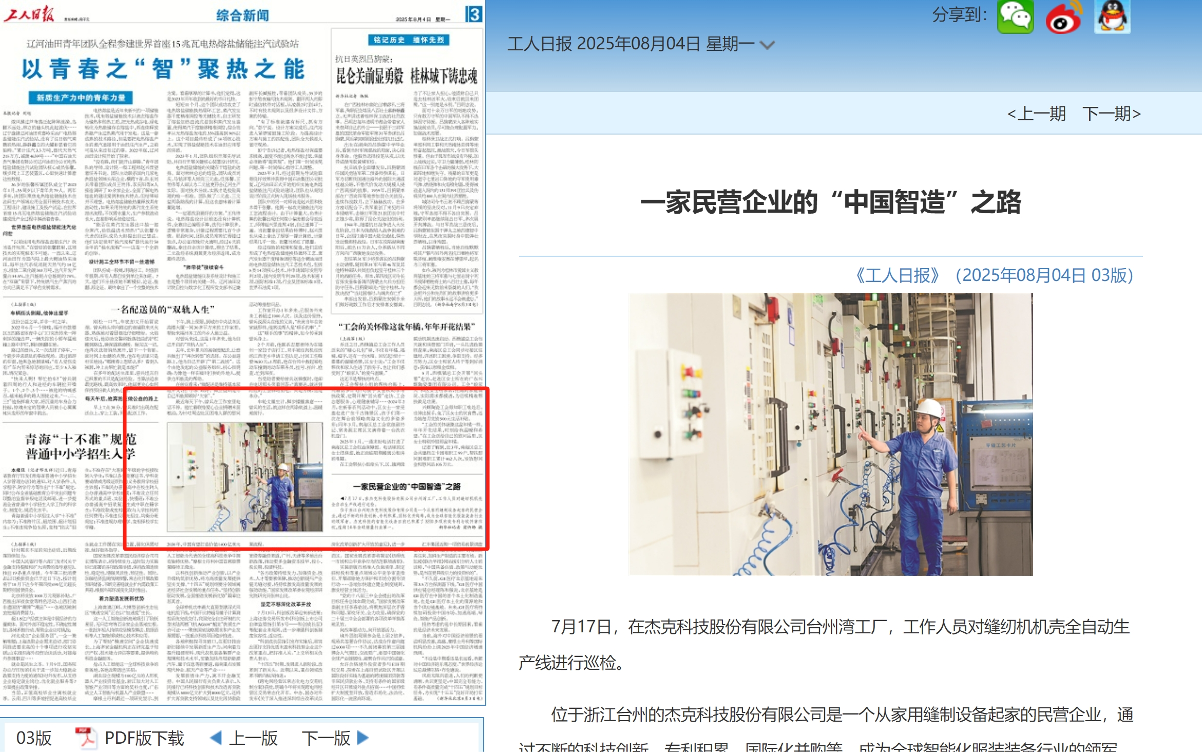 位于浙江台州的杰克科技股份有限公司是一个从家用缝制设备起家的民营企业,通过不断的科技创新、专利积累、国际化并购等,成为全球智能化服装装备行业的领军者。
