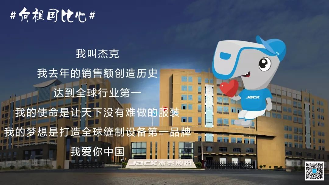 ▲我叫杰克,我去年的销量额创造历史,达到全球行业第一,我的使命是让天下没有难做的服装,我的梦想是打造全球缝制设备第一品牌。我爱你中国!