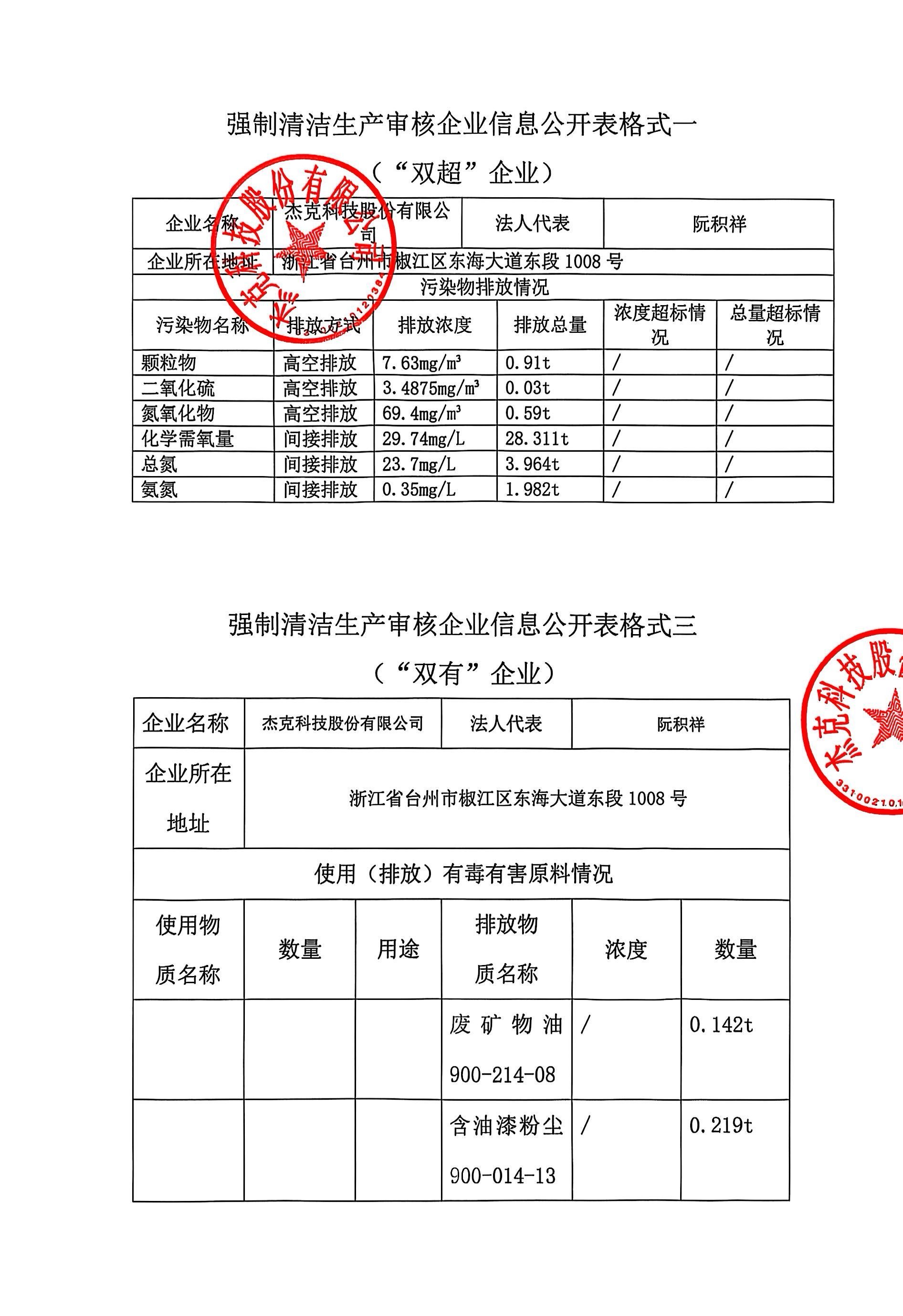 浙江杰克智能缝制缝制科技有限公司清洁生产公示