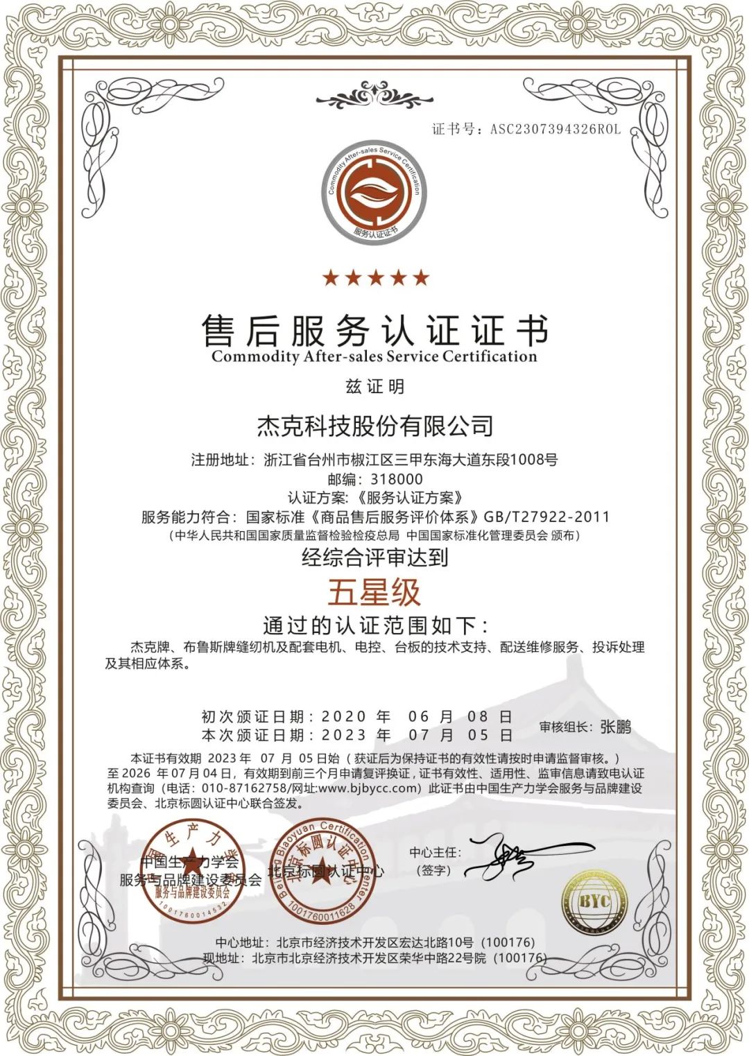 近期,北京标圆认证中心对杰克科技股份有限公司进行了一次五星级服务认证评审。该评审旨在确认杰克的商品售后服务评价体系是否符合所选用标准或规范要求,并评估其对法律和法规的符合性,以及所实施的服务的有效性和水平等级。